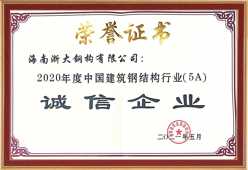 2020年度中國建筑鋼構(gòu)行業(yè)(5A)誠信企業(yè)